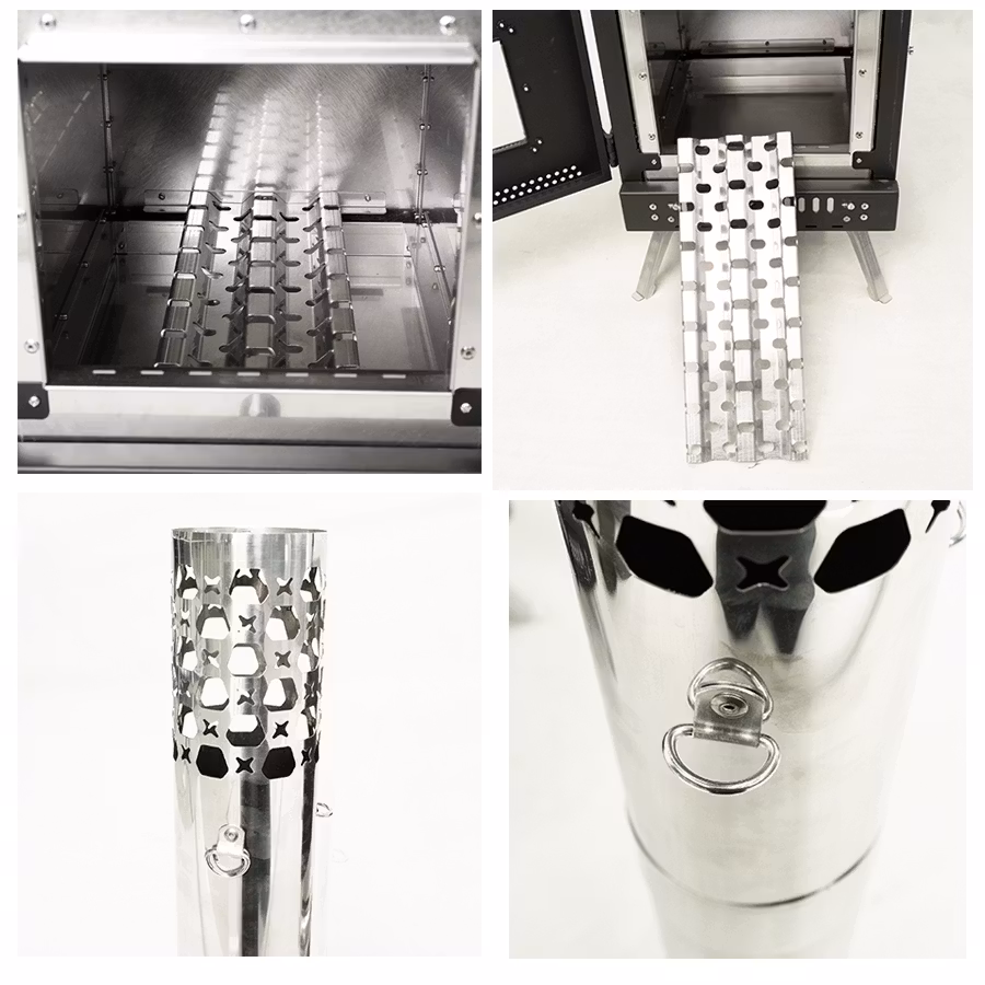 Själva eldstaden är av rostfritt SUS304 (AISI 304) stål 1,5mm tjock.