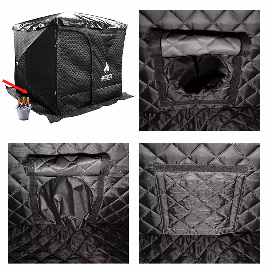 Tältets fönster är var för sig täckbara med medföljande luckor. Har ni för dagen en magisk utsikt? Riv bort alla luckor och ert bastubad kommer få en extra dimension.