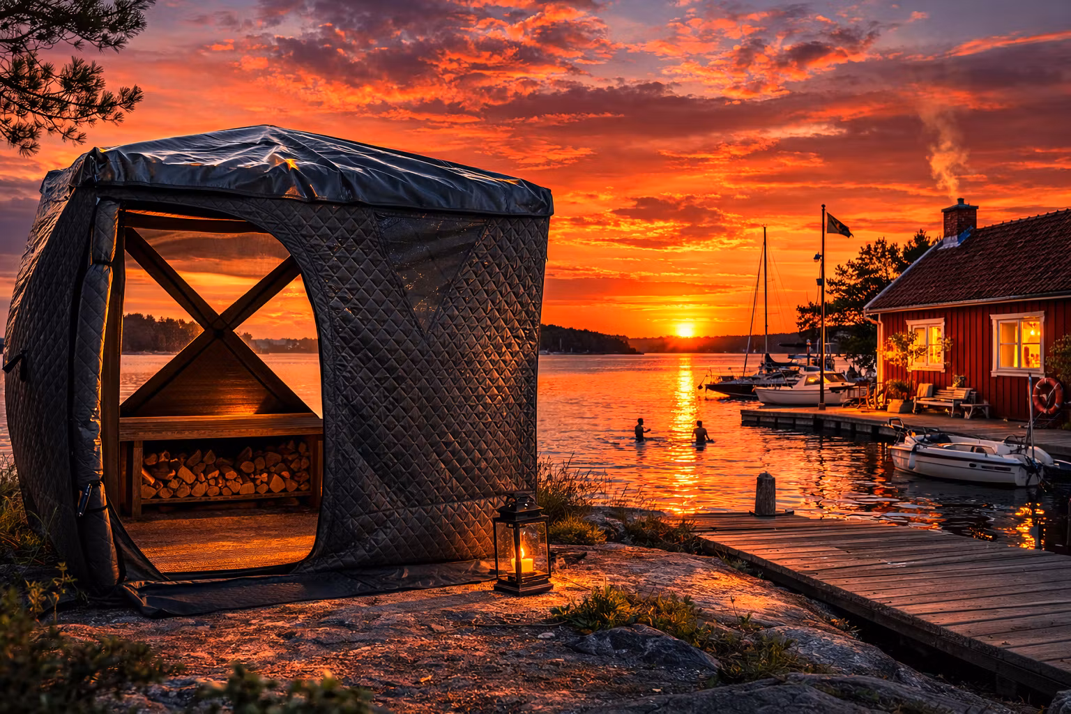 Bastutältet Sandhamn är bärbart, Supersnabbt att ställa upp & lätt att ha med sig i båten, bilen, husvagnen eller liknande.