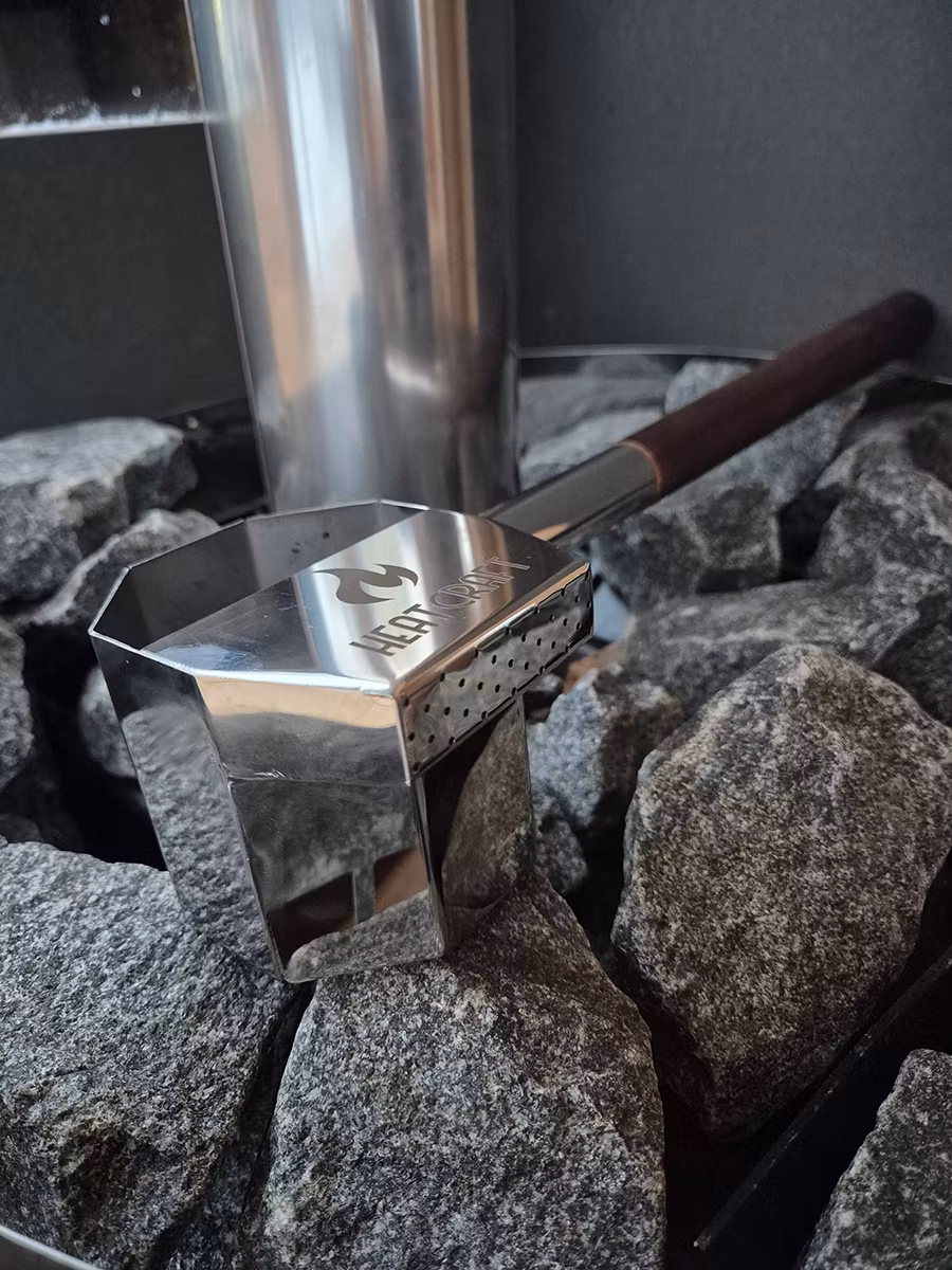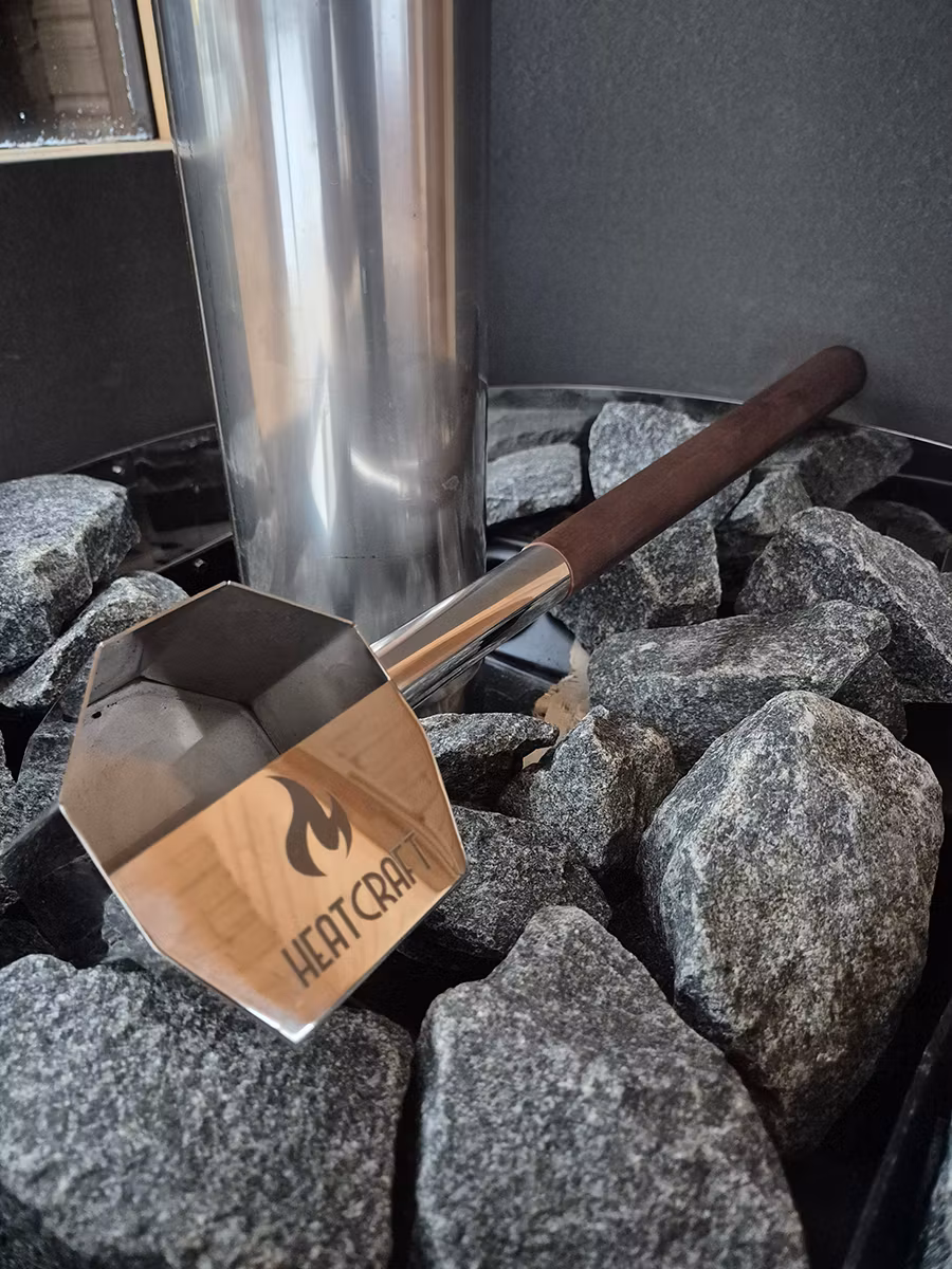 Ingen risk att ni bränner handen på ångan utan ni kan lugnt sprida vattnet över alla heta stenar.